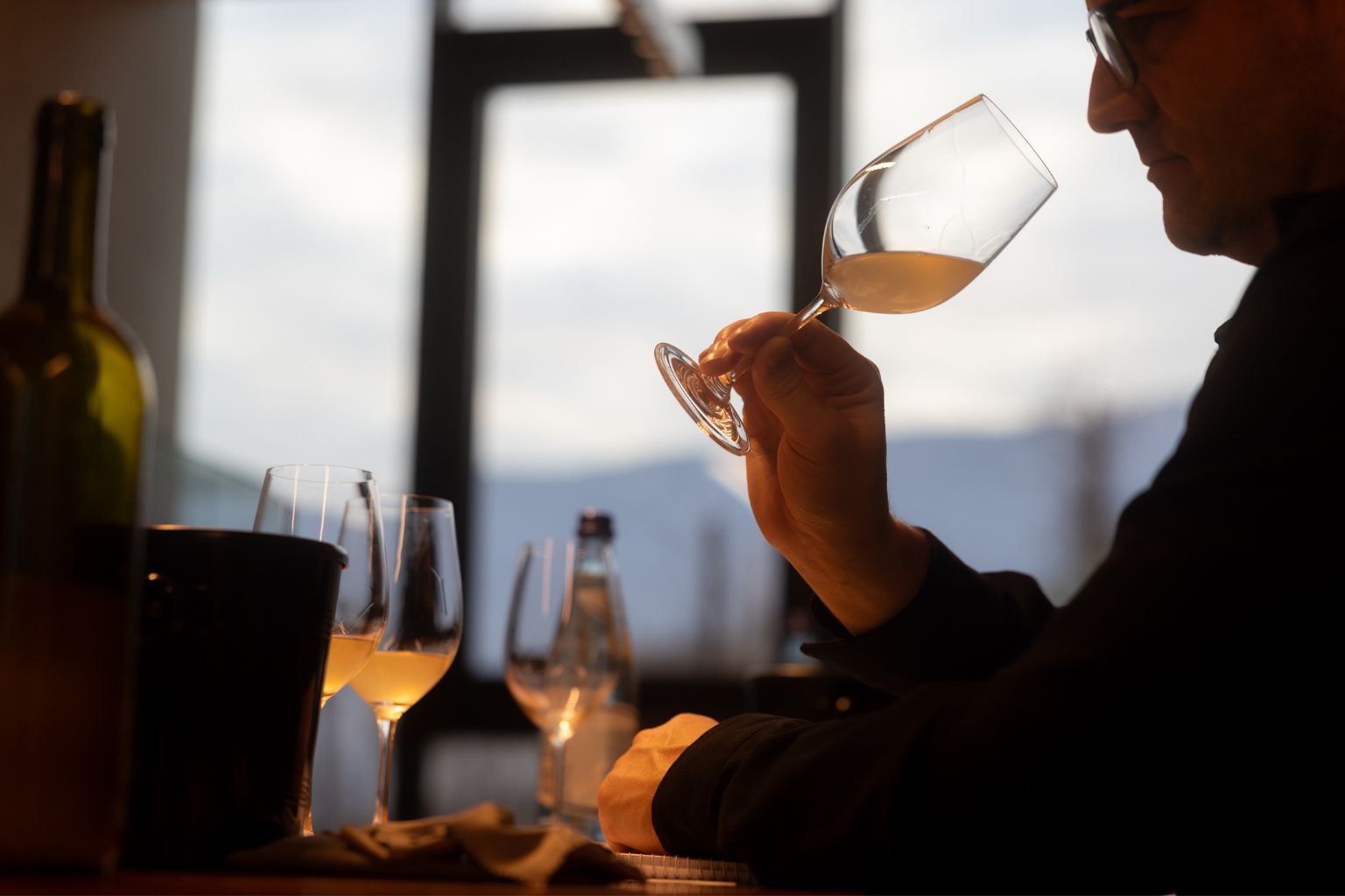 Im Zentrum steht dabei die Sensorik. Durch kontinuierliche Verkostung wird die Entwicklung des Weins begleitet, interpretiert und gezielt gesteuert. Gärverlauf, Ausbau und Reifezeit werden so eingesetzt, dass sie den gewünschten Stil nicht nur unterstützen, sondern klar herausarbeiten. Feinabstimmung entsteht dabei im Detail, im richtigen Moment, im richtigen Maß. So wird ein Wein bewusst entwickelt und in sich stimmig ausbalanciert.